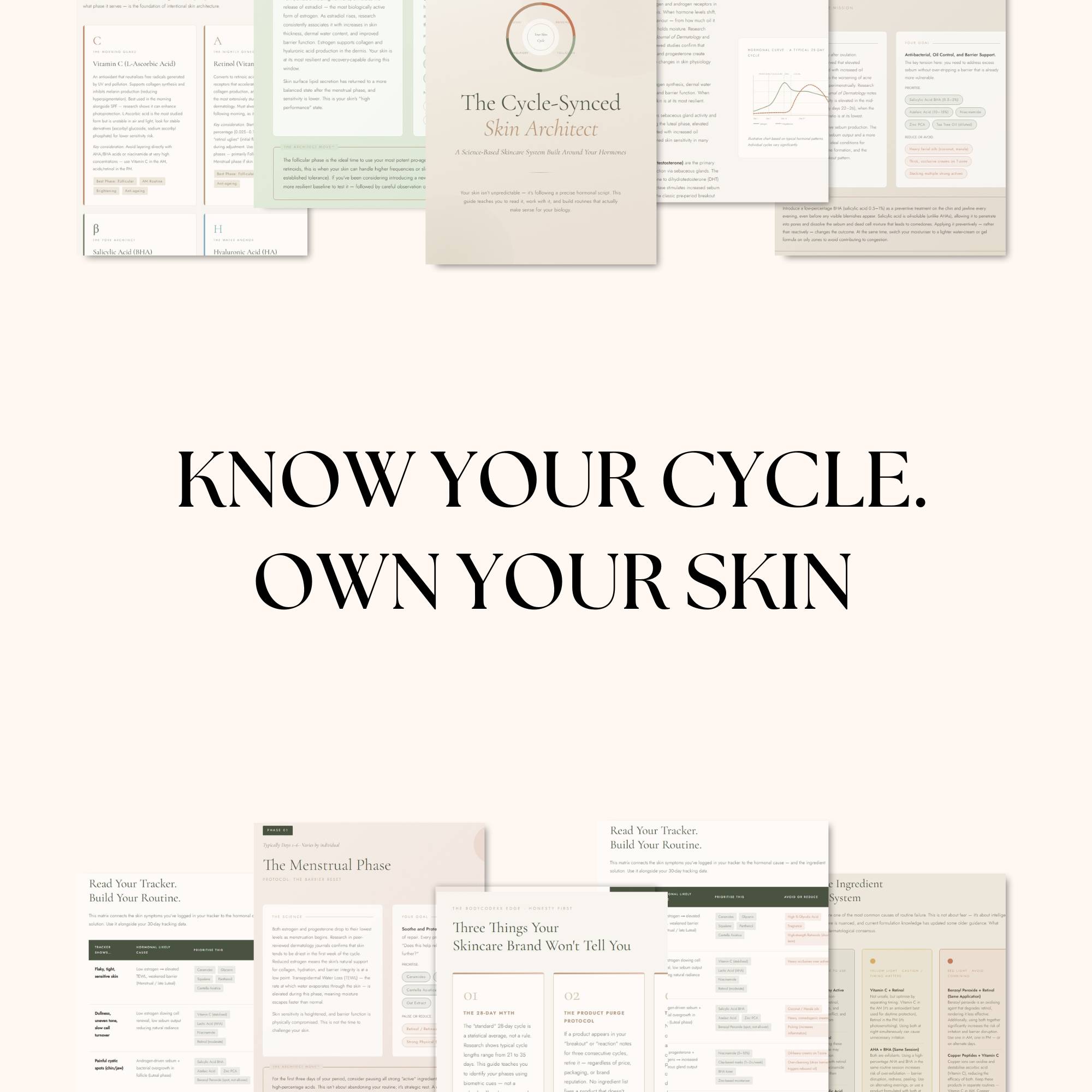 Your skin isn't unpredictable; it's just following your hormones. This interactive protocol is the "software" for your vanity—teaching you exactly which ingredients to deploy based on where you are in your cycle.