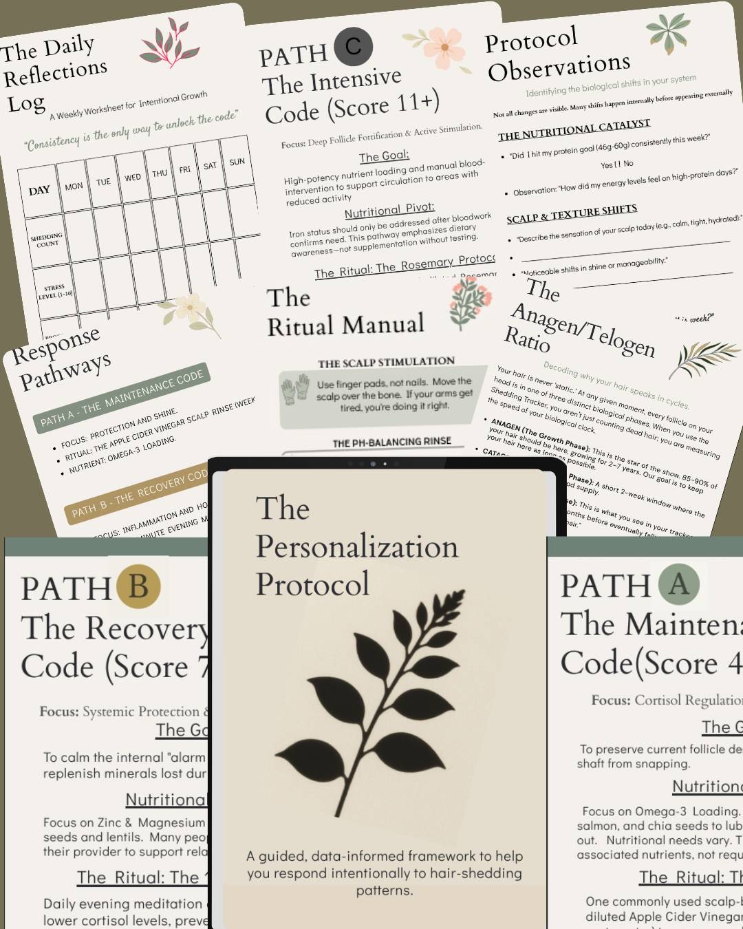 The Personalization Protocol is a guided, data-informed framework designed to help you understand and respond to hair shedding patterns—without panic, harsh treatments, or guesswork.